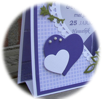 Nou dat is heel eenvoudig. De kaart kan in elkaar geschoven worden en is dan precies het formaat van 13,5 x 13,5 cm zodat de kaart in een enveloppe past van 14 x 14 cm.