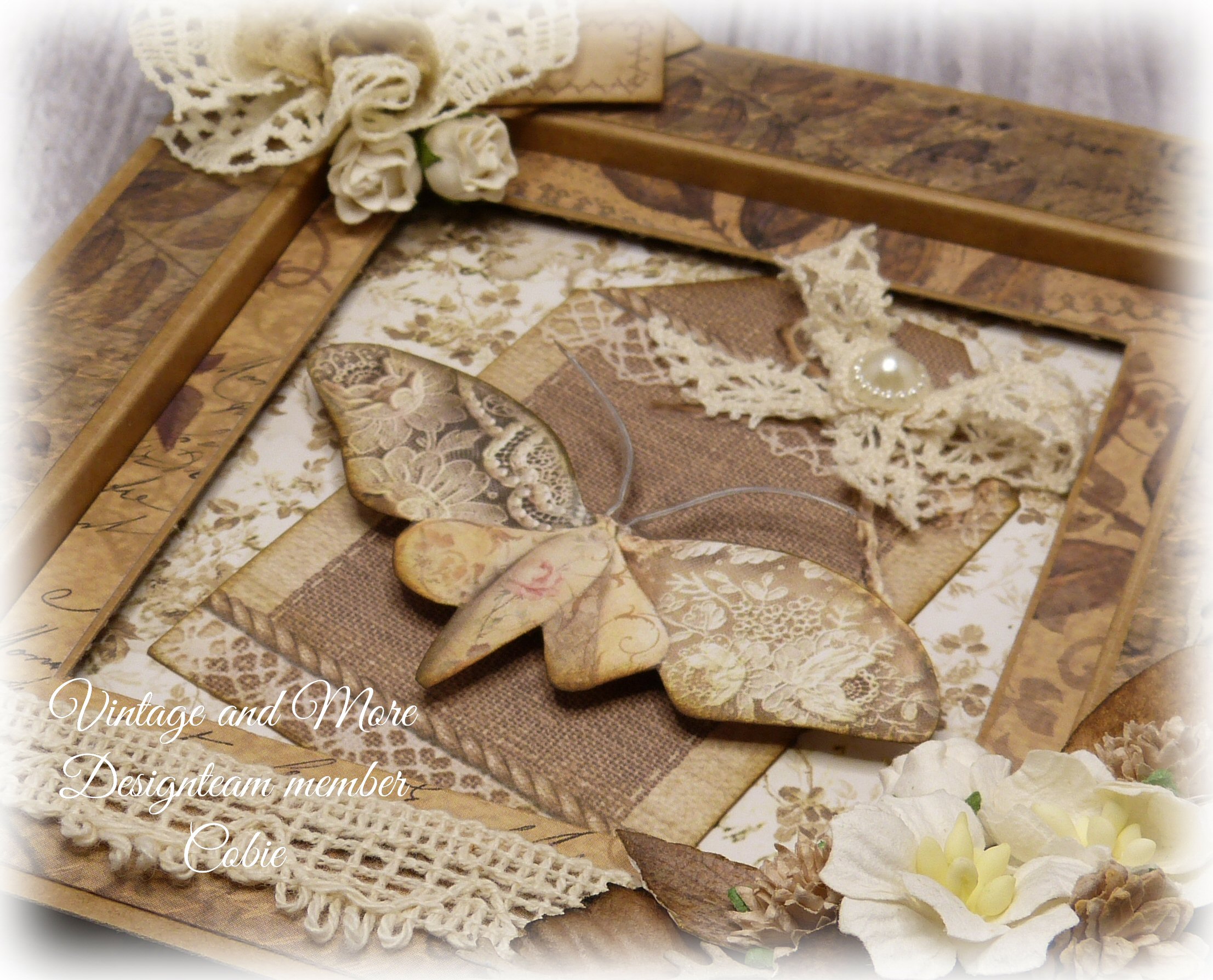 Bij "Vintage and More" is het mijn beurt om een reminder te plaatsen. Deze maand vragen we om "Vlinders" op je kaart. Het moet natuurlijk wel Vintage of Shabby Chic zijn, we zijn tenslotte een vintagegroep.